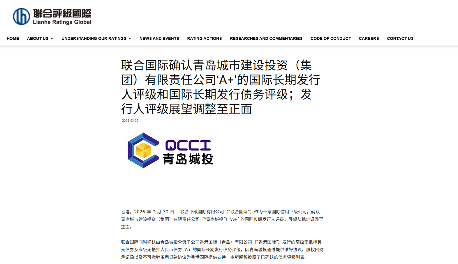 青島城投集團(tuán)成立于2008年,是青島市首批國有資本投資運(yùn)營公司試點(diǎn)企業(yè)。截至2024年末,青島城投集團(tuán)資產(chǎn)總額超4300億元,位列2024年全國城投公司總資產(chǎn)榜、總收入榜第5名,共有員工24000余人。青島城投集團(tuán)擁有國內(nèi)AAA和國際BBB+(惠譽(yù))、A+(聯(lián)合國際)信用評(píng)級(jí),旗下城金控股、創(chuàng)業(yè)投資等下屬企業(yè)擁有AAA主體信用評(píng)級(jí)。