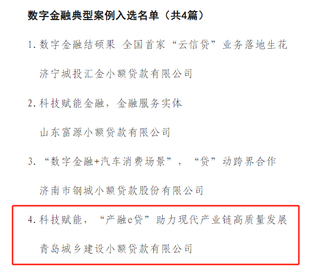 青島城投集團兩項業務入選山東省小貸協會典型案例