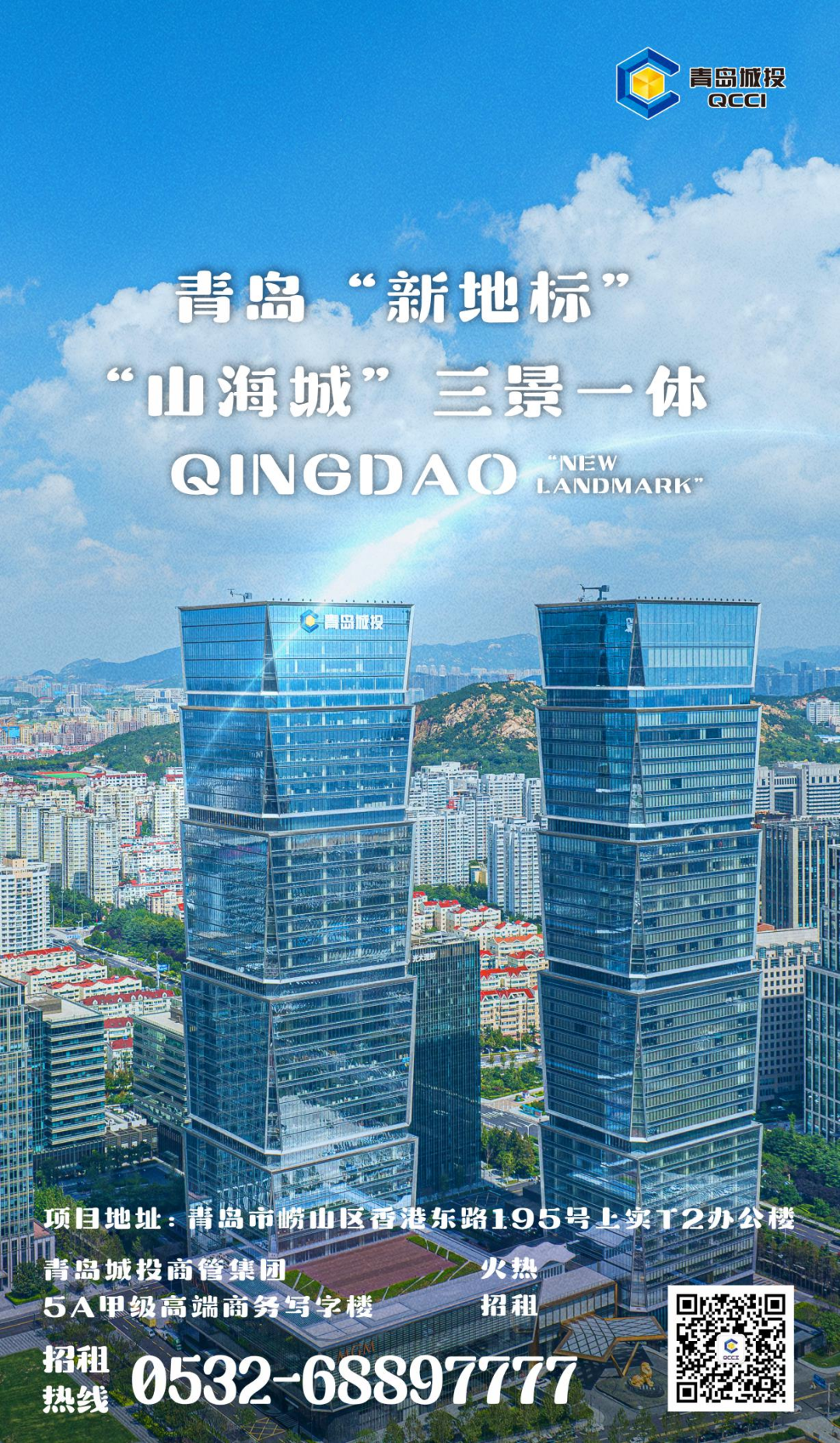 上實中心T2寫字樓位于嶗山金家嶺金融區,毗鄰石老人海水浴場,是城投集團自持的甲級寫字樓,東西與嶗山、浮山為鄰,南北為海-城連線,坐擁絕對青島嶗山核心位置,享有絕版海景、山景及城市景觀資源。現有10層、17-29層、35層、底層商業網點對外招商,了解詳情請點擊下方圖片長按掃描二維碼。