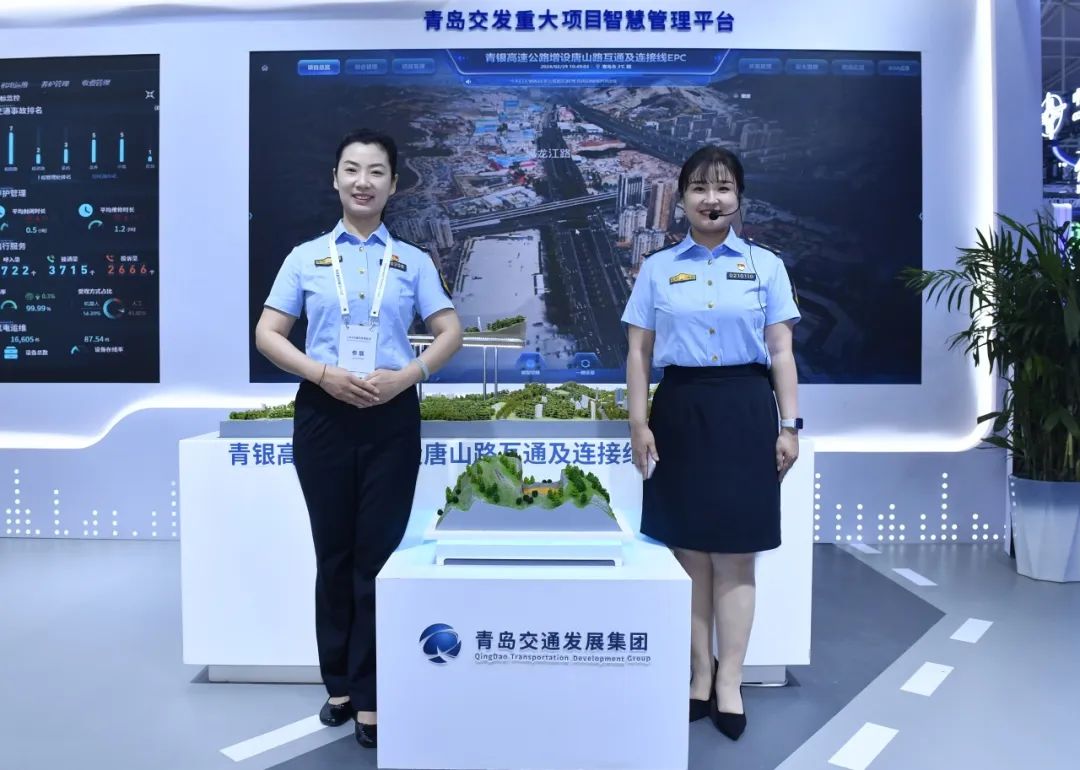 交發集團始終把科技創新作為引領發展的第一生產力,不斷推進云聯網、大數據等科技成果應用轉化,加速培育高質量發展新動能。針對此次展會,交發集團精心準備,圍繞近年來在高速公路運營管理、建設方面取得的新突破、新應用進行重點展示。高速公路運營管理方面,交發集團重點展示了具有完全自主知識產權的青島高速智慧管控平臺。該平臺搭建了1134系統架構(1網1腦3云4平臺),通過建立雙通道應急保障網絡、部署云腦管理平臺、構筑智慧高速底座,打造了移動辦公、路網監測、指揮調度、信息服務、移動運營等平臺應用,真正實現從道路異常自動監測到應急調度高精度匹配再到出行信息伴隨式發布的智慧交通協同聯動新場景。項目建設方面,交發集團以唐山路快速路工程為切入點,全方位展示了項目施工過程中將物聯網、大數據等技術與建設攻堅、管理創新的有機整合和應用實踐。通過無人機、智慧安全帽等終端設備與建管平臺駕駛艙的實時聯動,將工地可視化、管理實名化、監測實時化、應用智能化變為現實;通過“BIM+智慧工地”模式,在節點優化的同時實現三維可視化技術交底。