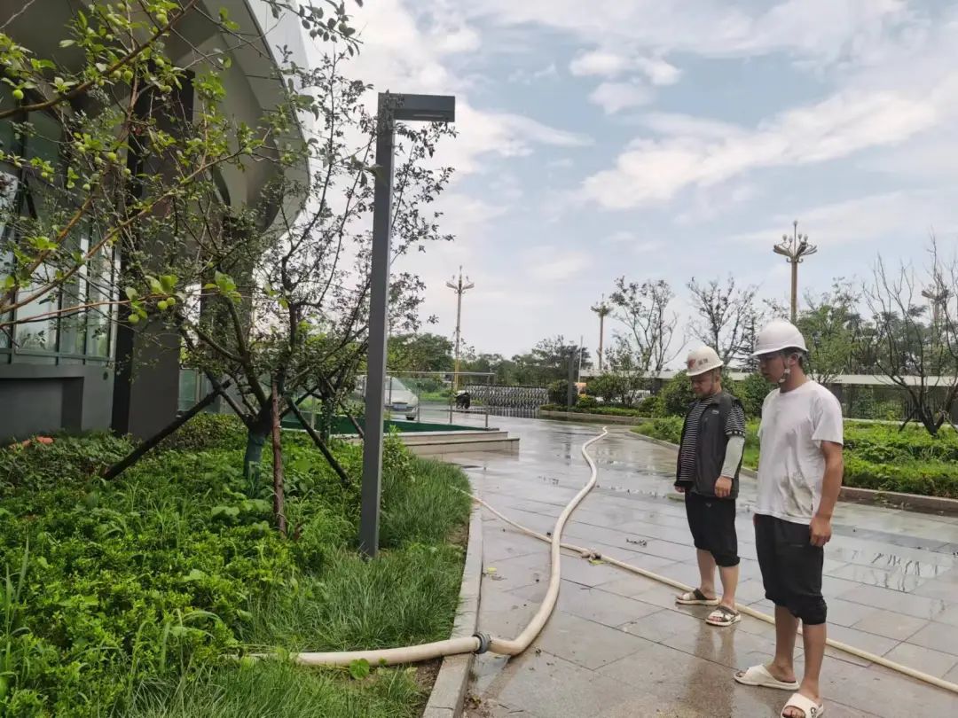 7月20日,地產(chǎn)集團(tuán)和川項(xiàng)目部連夜啟動(dòng)防汛應(yīng)急預(yù)案,防汛應(yīng)急隊(duì)伍20余人全部在崗備勤,潛水泵、鐵鍬、雨衣、雨靴、防汛沙袋等排水防汛物資完成點(diǎn)驗(yàn)、檢修,確保降雨時(shí)隨調(diào)隨用。同時(shí)對(duì)基坑,高堆土、腳手架、電氣設(shè)備等關(guān)鍵設(shè)施、重點(diǎn)部位進(jìn)行巡查,填補(bǔ)漏洞。本次降雨過(guò)程,施工現(xiàn)場(chǎng)未出現(xiàn)任何基坑坍塌、觸電漏電及工程實(shí)體受損等事故,現(xiàn)場(chǎng)清理和積水抽排工作正緊張而有序的進(jìn)行。