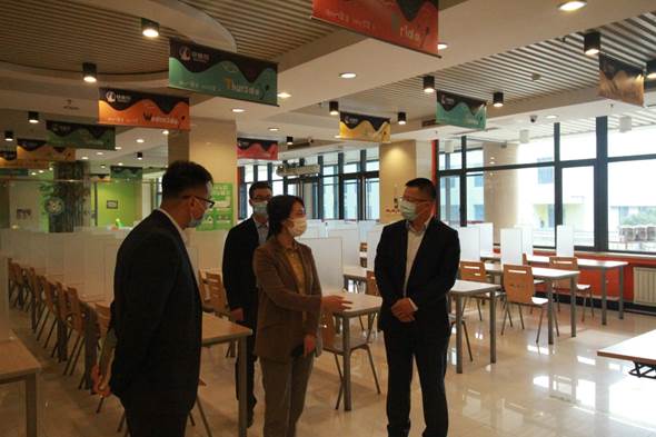 張丹丹對國際學校在疫情防控工作和學校發展中取得的成績給予了充分肯定,贊揚了國際學校迎難而上、攻堅克難的國企精神。張丹丹指出,當前防疫工作是教育系統的一項重大政治任務,希望在接下來的工作中,學校能夠繼續提高政治站位、統籌布局,充分結合實際,精心部署、精細管理、精準防控,以強烈的責任心和使命感,確保校區全體人員安全健康。