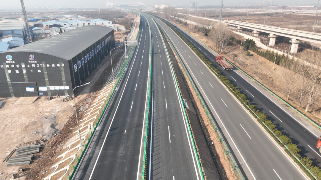 (圖為青蘭高速雙埠至河套段改擴(kuò)建工程新建南幅完工)