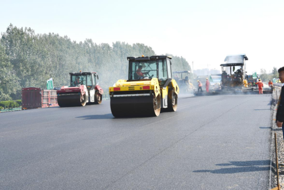 (圖為青蘭高速雙埠至河套段改擴(kuò)建工程全厚式長(zhǎng)壽命瀝青鋪設(shè))
