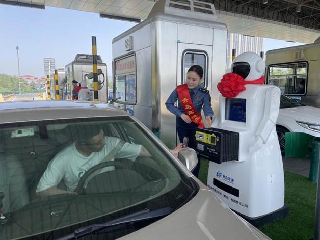 5月26日,山東省首款“人形智能車道收費(fèi)機(jī)器人”在青島城投集團(tuán)旗下交發(fā)集團(tuán)所轄青島東收費(fèi)站正式啟用。