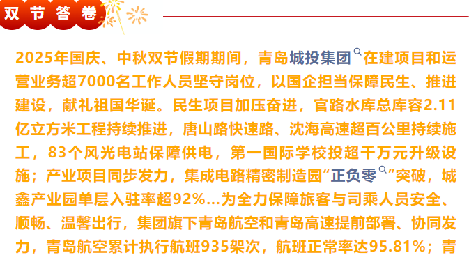 935架次,506萬輛次,7000余人在崗……青島城投雙節答卷來了!
