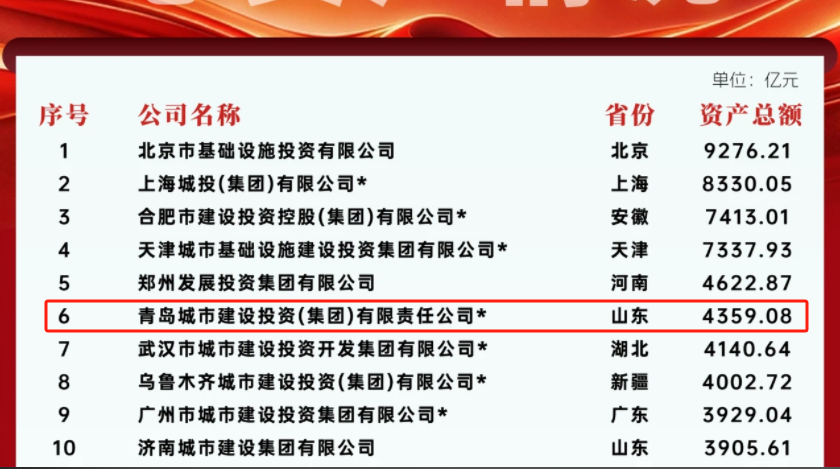 青島城投榮登全國城投公司收入榜第5名