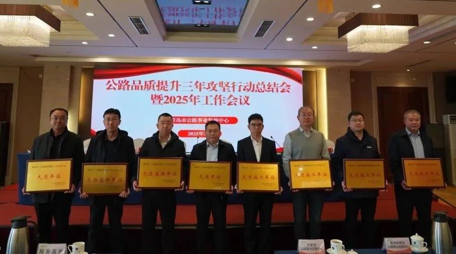 近日,青島市公路事業發展中心組織召開“公路品質提升三年攻堅行動”總結會,青島城投集團旗下交發集團所屬路橋集團、監理公司榮獲先進單位榮譽稱號。(圖為先進單位頒獎現場)攻堅完成各項大中修工程,圓滿完成施工及監理任務。在“三年攻堅行動”期間交發集團完成投資14.34億元,共承建國省干線大中修項目22個、普通國省道日常養護工程6個,累計改善路面里程超過300公里,提前完工率100%,工程合格率100%,國省道路面技術狀況(