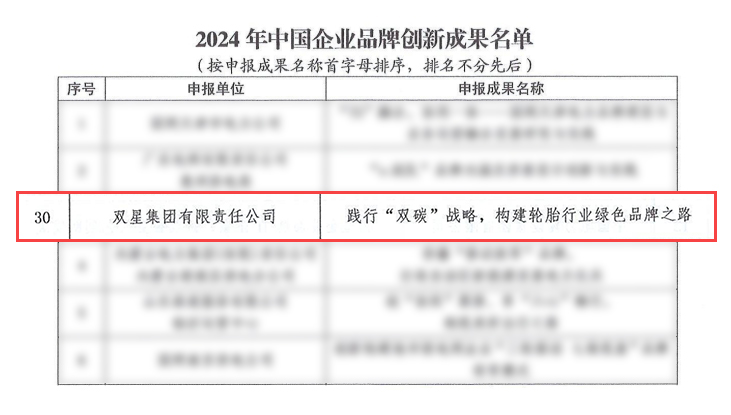 雙星集團成為輪胎行業唯一榮獲“中國企業品牌創新成果獎”企業