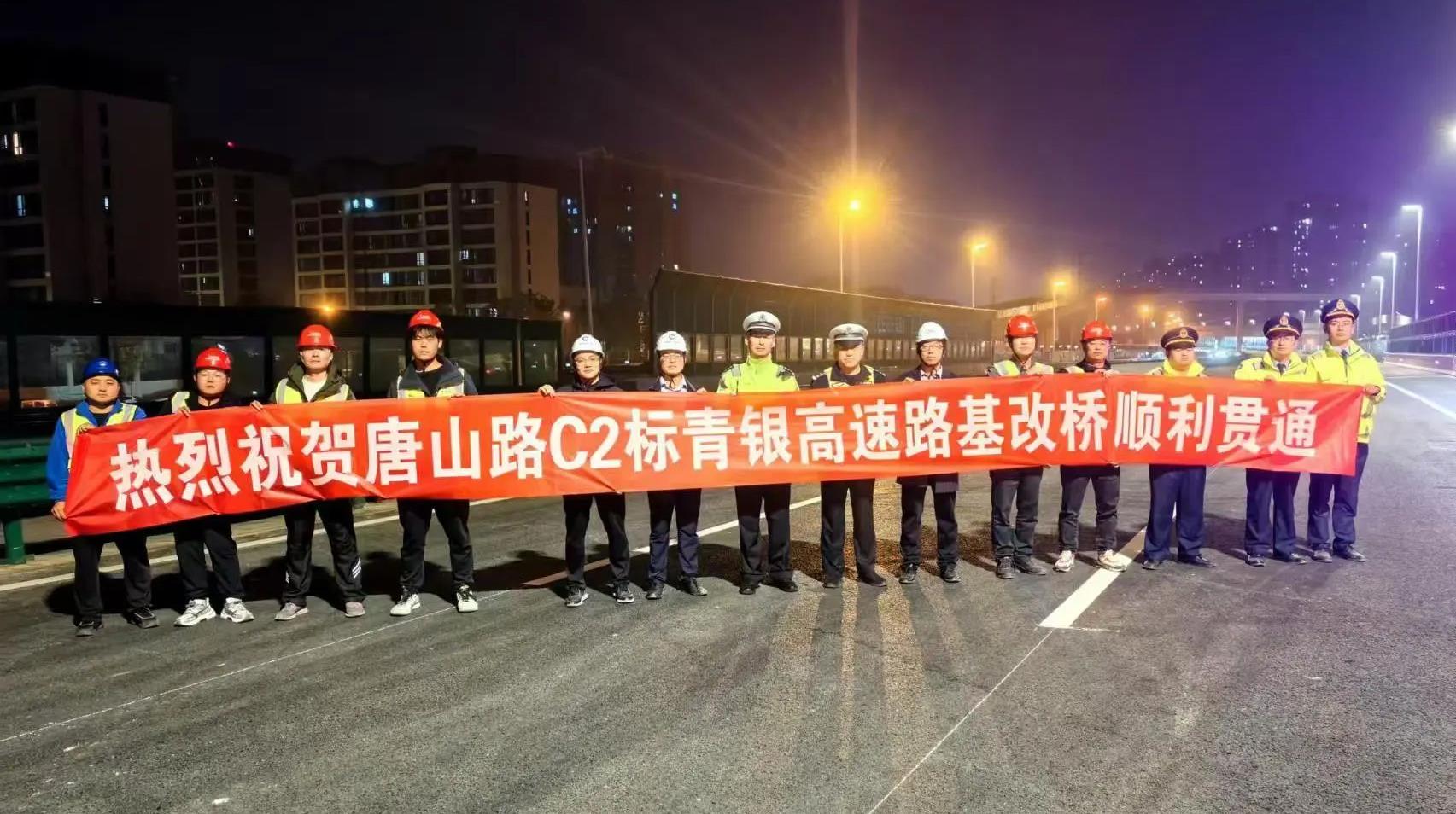 唐山路快速路工程青銀高速路基改橋順利貫通