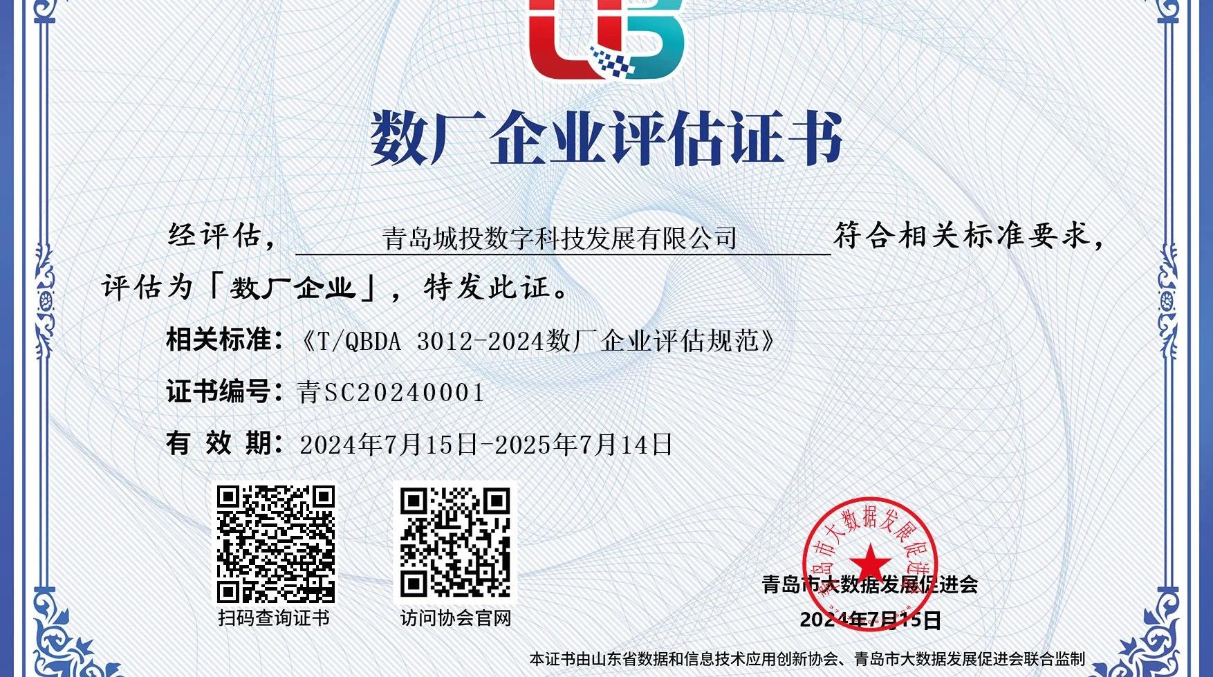 青島城投集團旗下數科公司榮登2024年青島市首批“數廠企業”名單