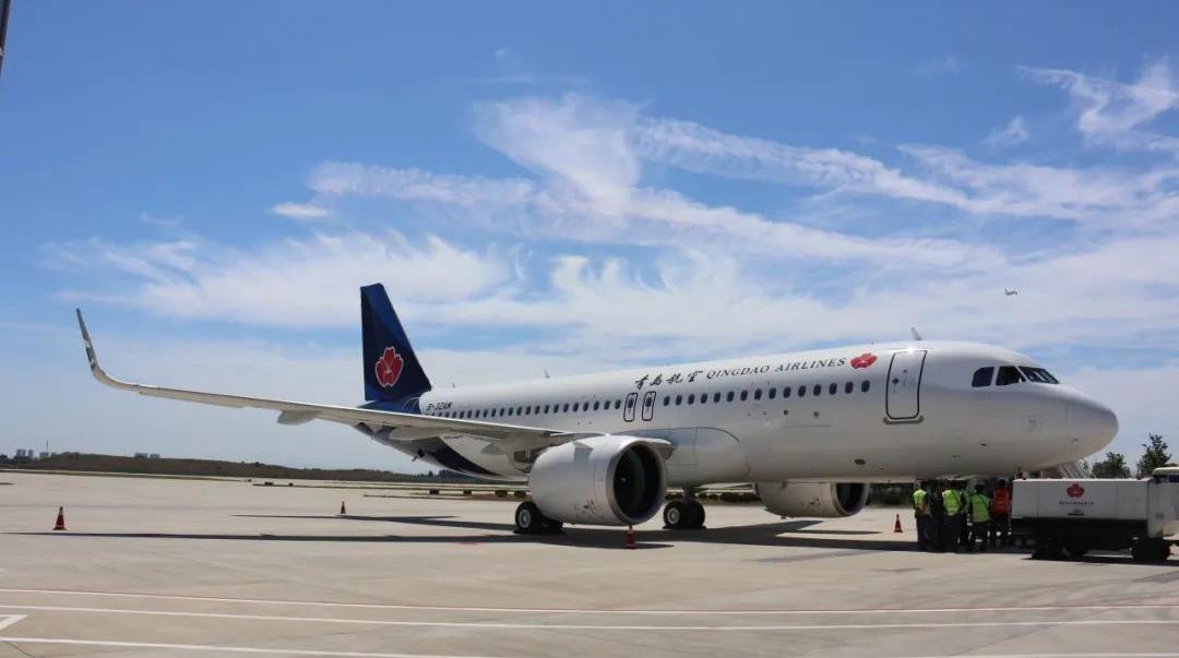 6月27日9時53分,一架身披全新耐冬花涂裝的空客A320neo飛機從法國圖盧茲順利抵達青島膠東國際機場,這是青島城投集團旗下青島航空今年到場投入運營的首架新飛機,注冊號為B-32AM,標志著青島航空全空客機隊規模擴增至37架,運力規模進一步擴大。(圖為接機儀式現場)飛機抵達當天,青島航空領導一行來到機坪,迎接新飛機的到來,并向機組人員獻花。此前,為做好新飛機的順利引進和投運各項工作,青島航空相關工作人員組成接機小組