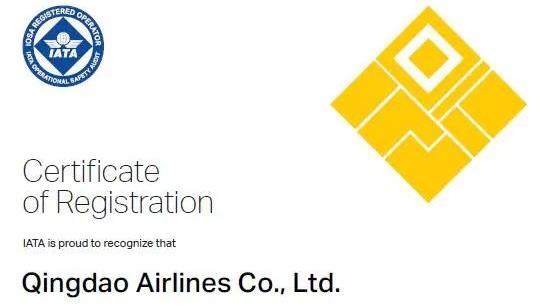 城投集團旗下青島航空獲頒國際航空運輸協會運行安全審計認證注冊證書