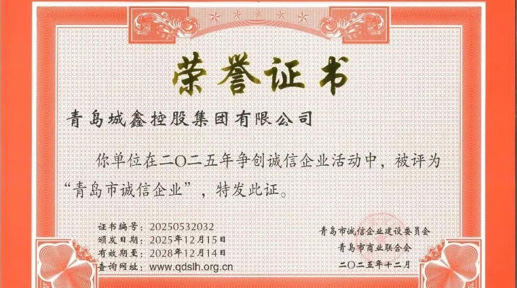青島城鑫控股集團(tuán)榮獲“青島市誠信企業(yè)”