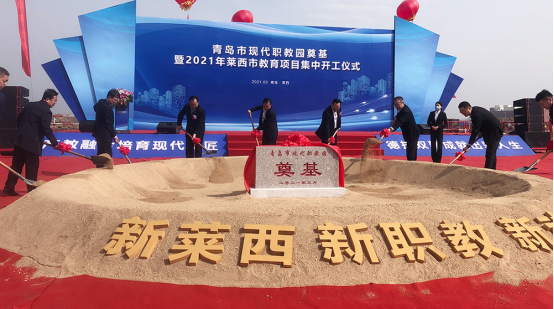 3月26日,青島市現代職教園奠基儀式在萊西姜山產業新城舉行。青島市教育局局長劉鵬照,萊西市委副書記、市長王清源,集團黨委委員、副總經理于志軍,以及山東外貿職業學院、萊西市南部片區指揮部、萊西市教育體育局、萊西平度公司等單位相關領導參加奠基儀式。
