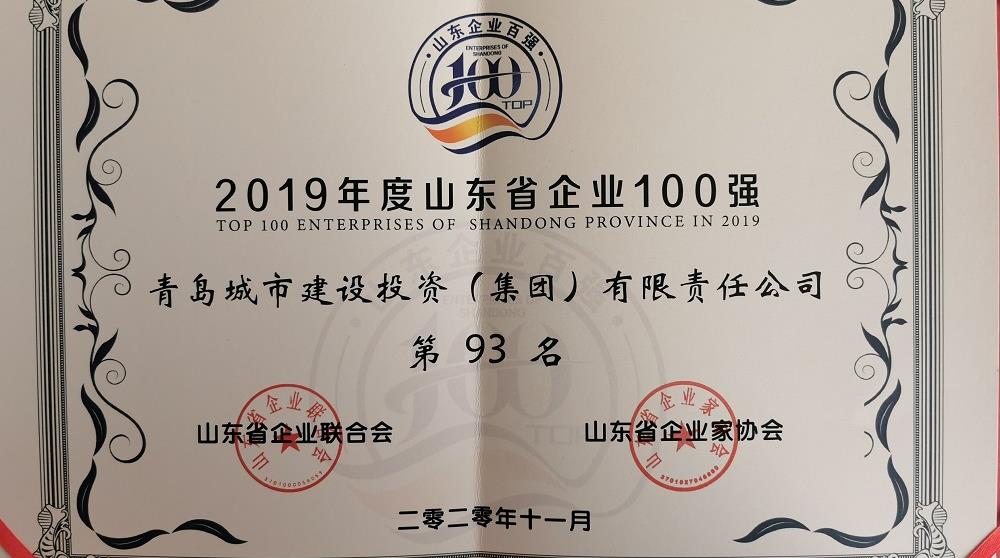 11月11日,山東省百強企業發布會暨工業經濟發展形勢報告會在濟南召開,山東省工業和信息化廳、山東省企業聯合會依據企業2019年營業收入年報數據等,通過組織審核及綜合評定,確定并正式發布了2019年度山東省綜合百強企業名單,我集團成功入圍,位列第93位。
