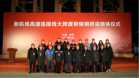 11月3日晚,新機場高速連接線(雙埠-夏莊段)工程大跨度耐候鋼橋梁轉體儀式隆重舉行,市政府副秘書長王振東,市住建局副局長胡樂常,城陽區政府副區長李明鋼,城投集團黨委委員、副總經理于志軍,黨委委員、紀委書記林本偉,黨委委員生錫順,總工程師么子寅出席儀式。